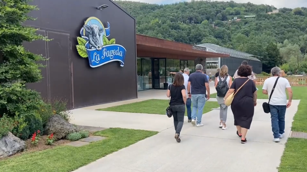 Por ultimo y para finalizar el día, La Fageda nos brindó con una visita tanto por las granjas como por los puestos de trabajo de sus empleados. Nos mostraron el estilo de vida de las vacas, que cuentan con algunas peculiaridades como que duermen con música barroca o que hacen uso de masajeadores automáticos. Después nos enseñaron la forma de obtención de la leche ya que es mediante un robot automático que no requiere la manipulación de personal. Para terminar vimos parte de su cadena de producción y las funciones que desempeñan sus empleados.