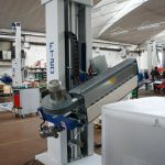 Una columna de aluminio extrusionado, soporta el conjunto quemador, que se desplaza sobre ella en sentido vertical por la acción de un motor reductor controlado por convertidor de frecuencia. Es posible regular el tiempo de calentamiento de la base, su enfriamiento y el tiempo de calentamiento de parte superior del palet.