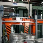 El desenrollado de las bobinas se controla mediante la tracción generada por el movimiento del paquete sobre el sistema de transporte, apoyado por un rodillo oscilante y un sistema de frenado, lo que garantiza un funcionamiento fluido y sincronizado con la línea.