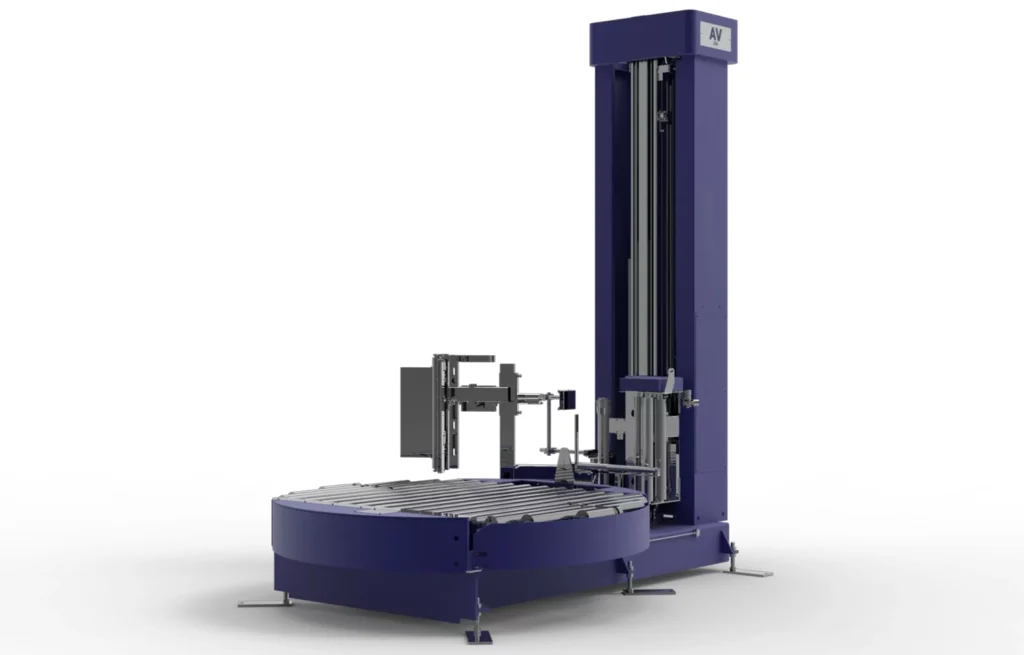 La enfardadora automática de plataforma AV300 es una solución diseñada para automatizar el final de línea, garantizando un enfardado continuo, seguro y totalmente automático de palets en entornos industriales.