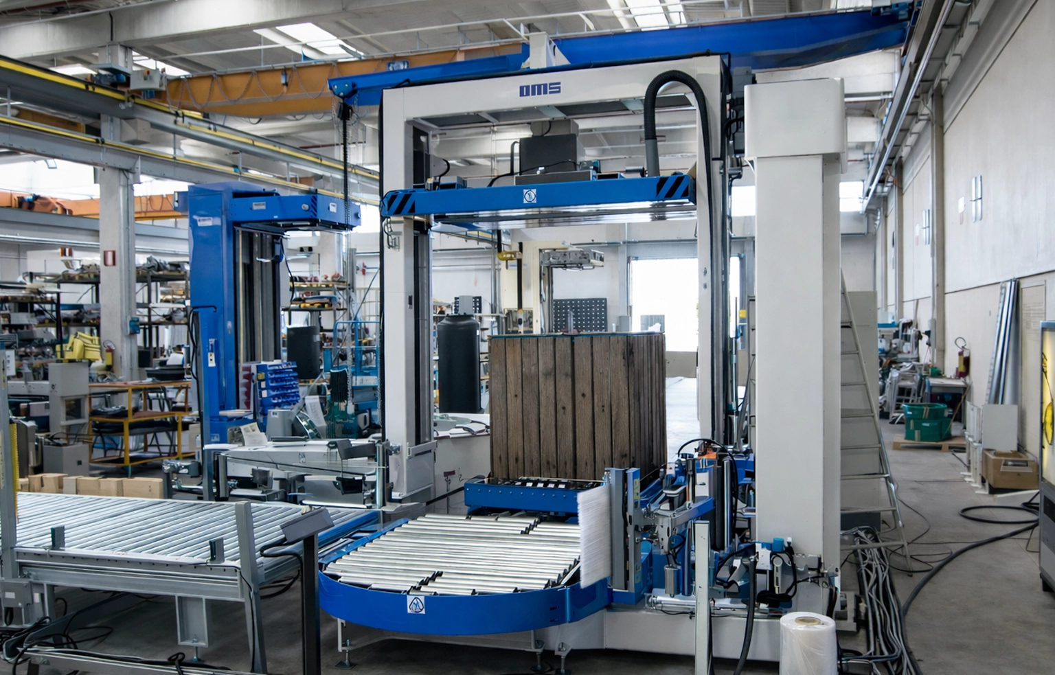 La enfardadora automática de plataforma AV300 OMS España es la solución ideal para empresas que buscan automatizar el final de línea, mejorar la estabilidad del palet y contar con una máquina robusta, precisa y fiable, preparada para un uso industrial continuo.