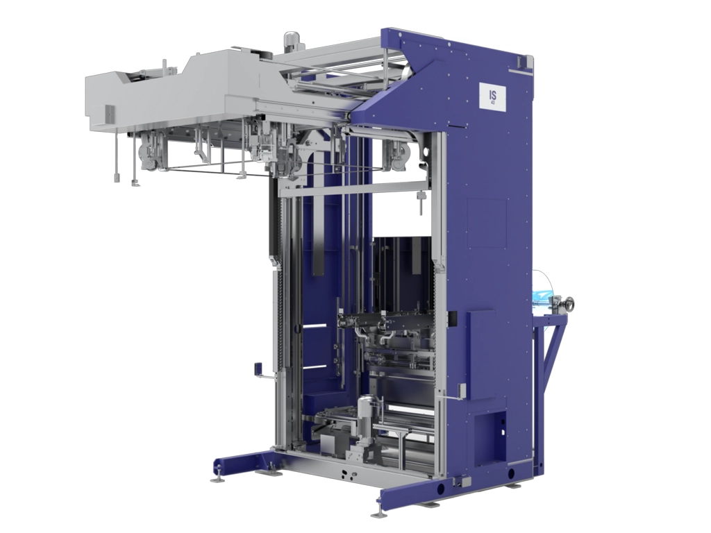 La IS43 optimiza el proceso de encapuchado mediante una separación clara de funciones: la preparación del saco se realiza en la parte posterior de la máquina, mientras que el encapuchado se efectúa en la parte frontal, asegurando un flujo continuo y una alta productividad.