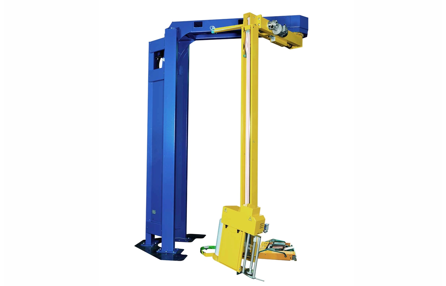 La columna del carro de ascenso y descenso, de alta rigidez, asegura un movimiento vertical preciso y constante del portafilm, manteniendo una envoltura uniforme del palet ciclo tras ciclo.